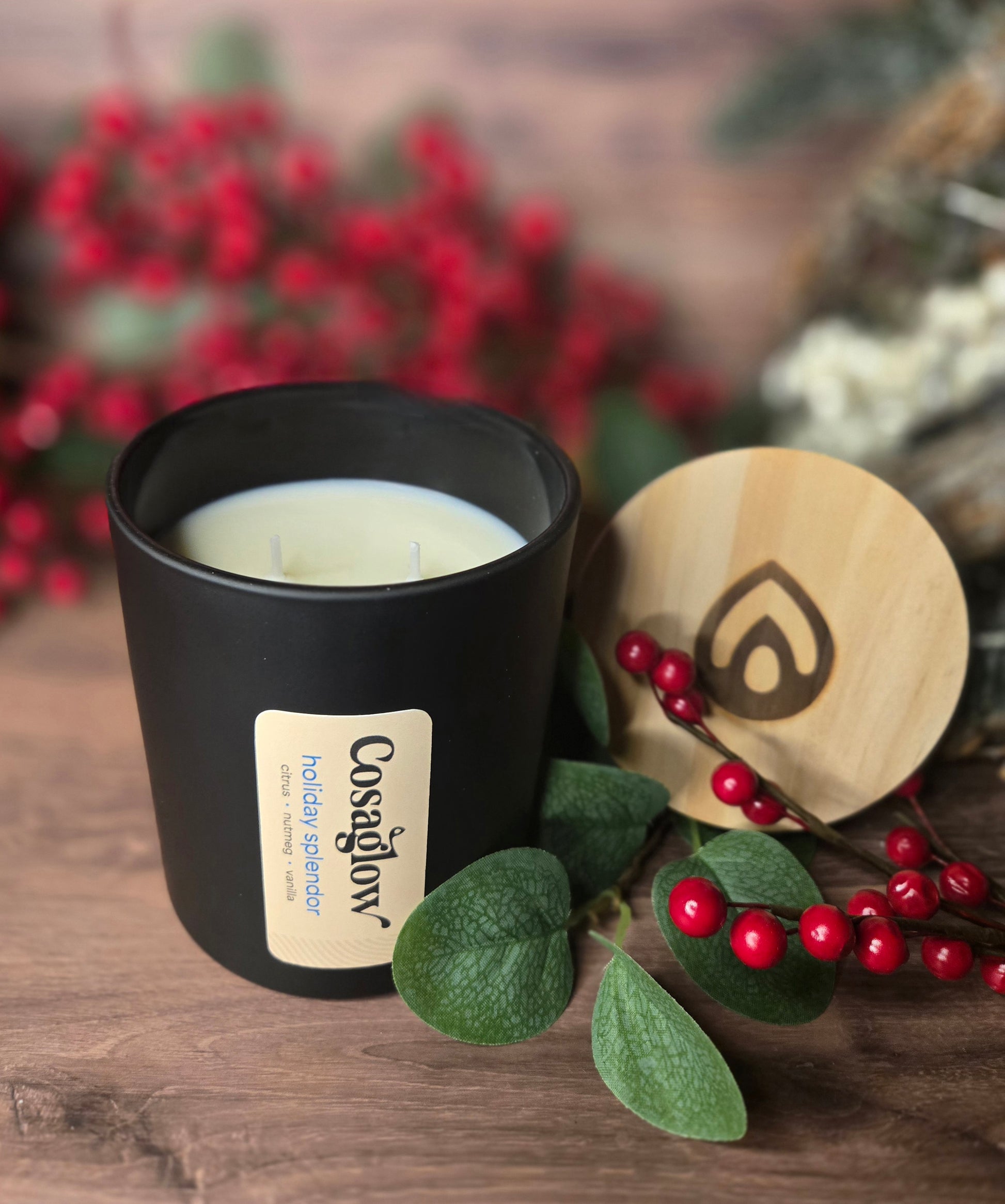 Experience the enchanting essence of the season with Holiday Splendor - Limited Edition. This sophisticated 100% soy candle blends bright citrus, warm nutmeg, and creamy vanilla to create a magical, timeless ambiance. Perfect for elevating your holiday moments with a refined, inviting glow. Also, in wax melts & linen sprays!